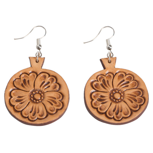 Tooled Round Drop Earrings – Leather Jewellery Surgical Steel