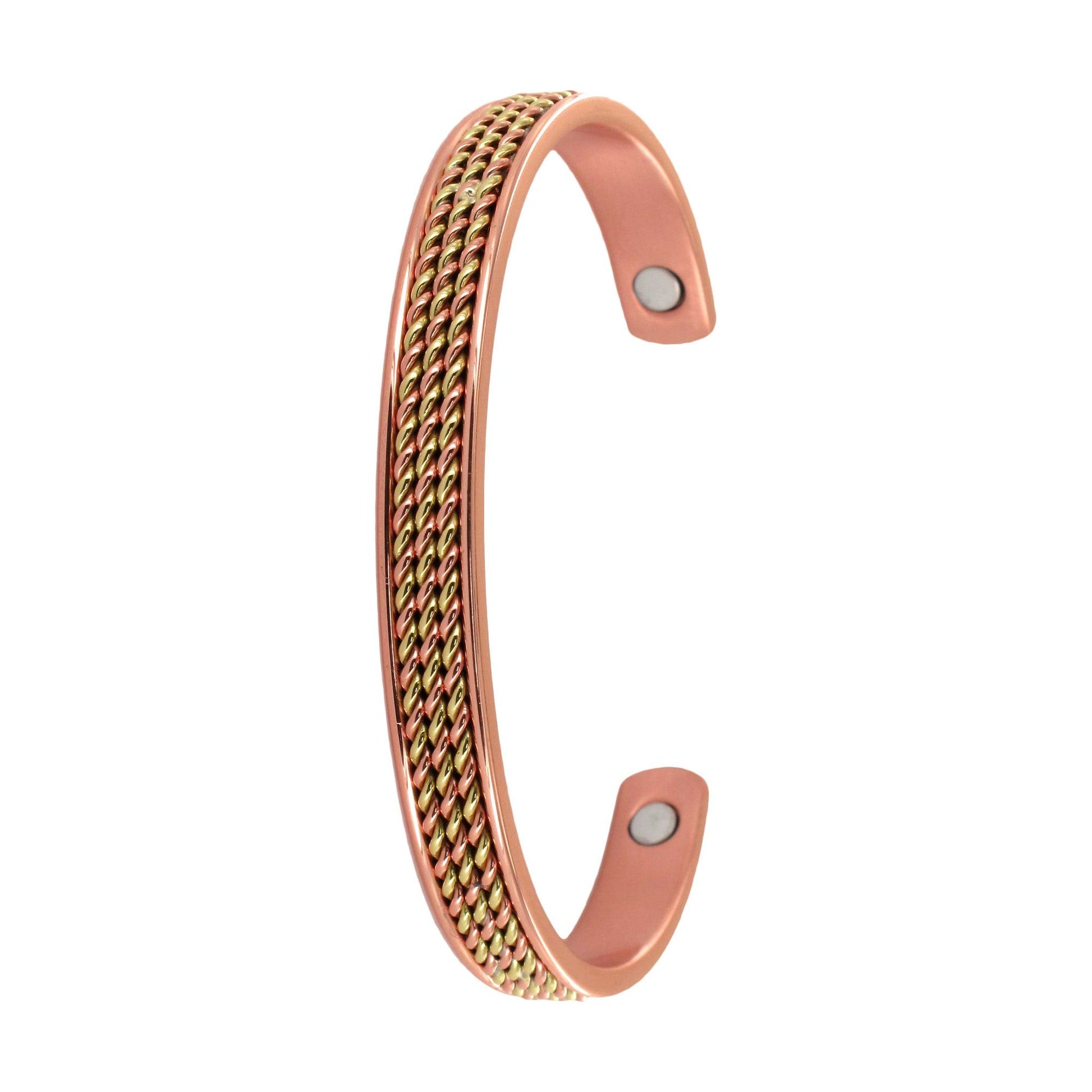 This beautifully crafted Two Tone Copper Magnetic Therapy Bracelet combines modern style with traditional natural healing principles. Made from solid copper and featuring dual-tone detailing, it offers both an attractive look and potential wellness benefits. The bracelet gently adjusts to your wrist for a secure and comfortable fit — ideal for daily wear.