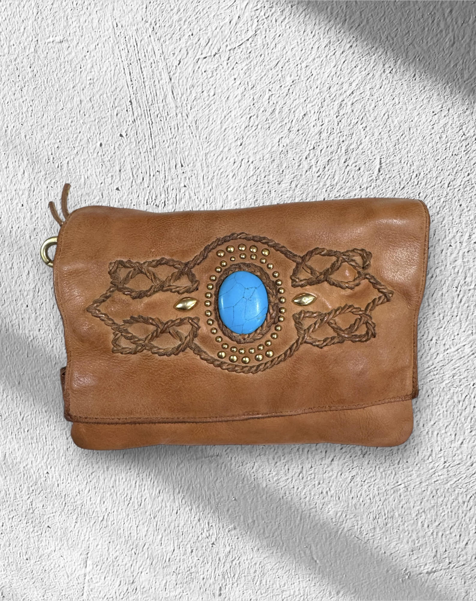 Design: Foldover silhouette with artisanal hand-finished detailing