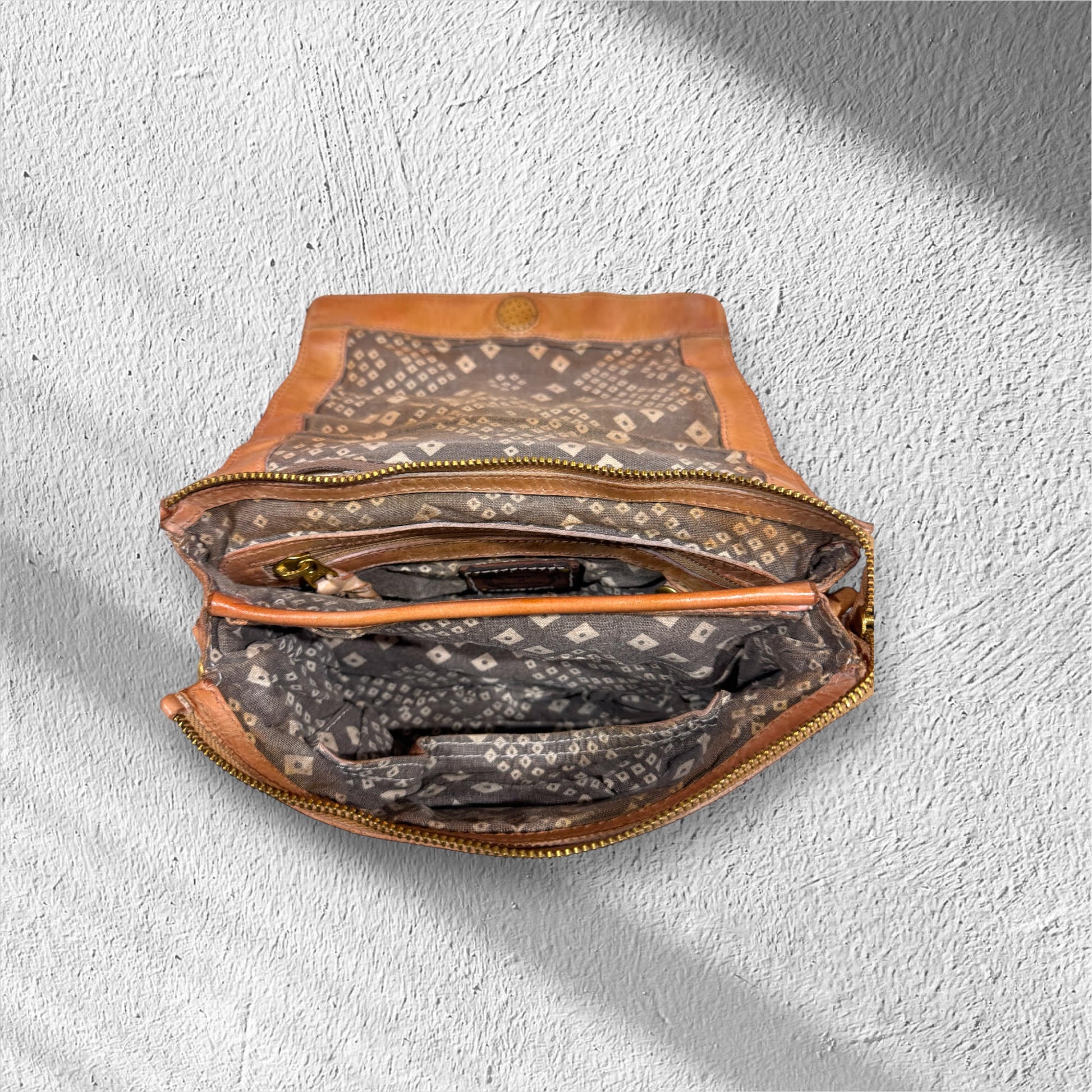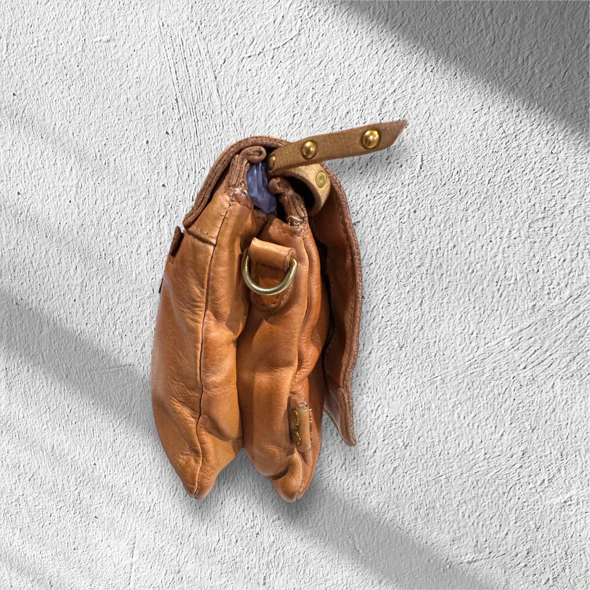 The Nico Foldover by Art N Vintage is a versatile crossbody designed for effortless style and practicality. Crafted from soft leather in a warm Honey shade, it features a foldover design with two roomy compartments to keep your essentials organised.