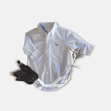 Smart, timeless, and endlessly versatile—our best-selling Dress Shirt Romper is now available in a classic Navy Pinstripe. Designed to keep your little man looking polished and feeling comfortable, this all-in-one romper is perfect for every occasion, from family outings to special events.