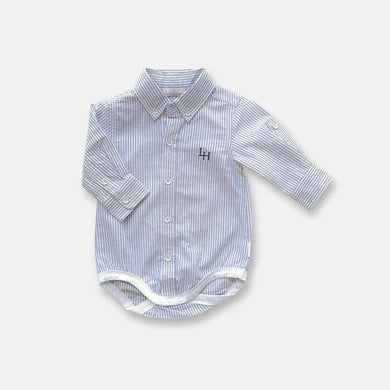 Baby Boys Dress Shirt Romper – Navy Pinstripe