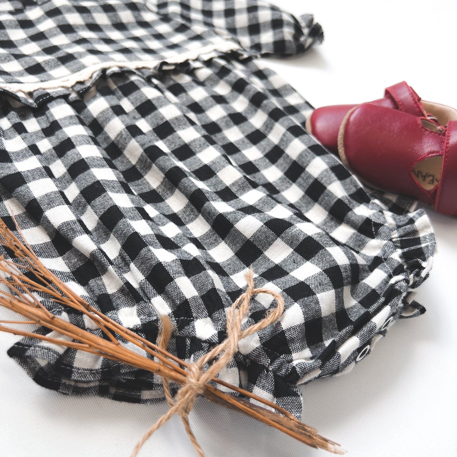 Beautifully light and airy cotton in one of our signature prints of the season, this is our winter twist on our winning summer style. This simple romper lets the fabric do all the talking. Easy for baby to wear and move around in due to the elasticated legs, easy access press-studs for changing and slight voluminous fit.