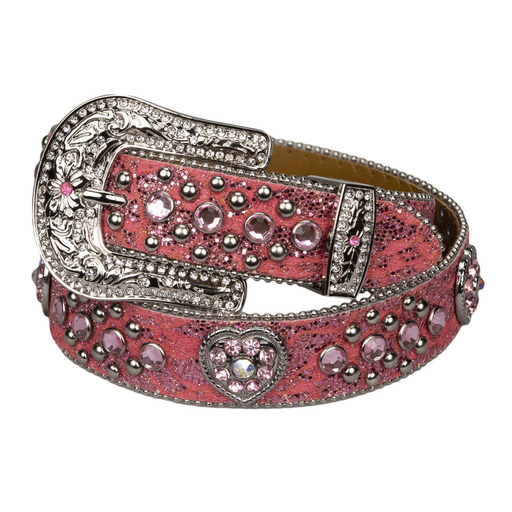 Girls’ Western Pink Sparkling Belt – Heart Concho