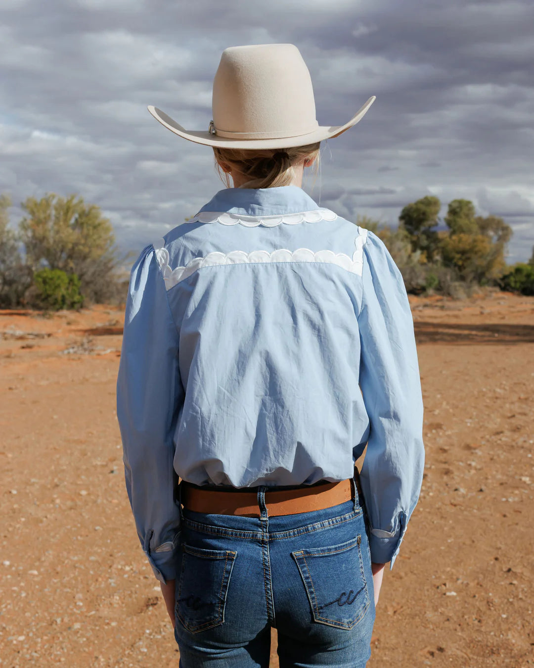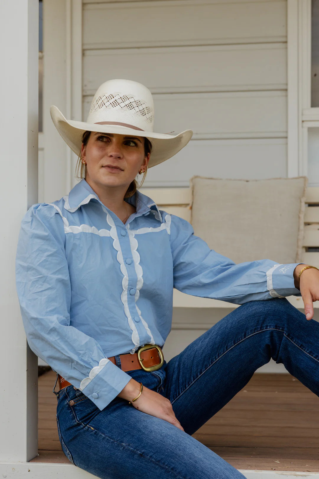 Black Colt – Ivy Scallop Trim Cotton Blouse | Blue