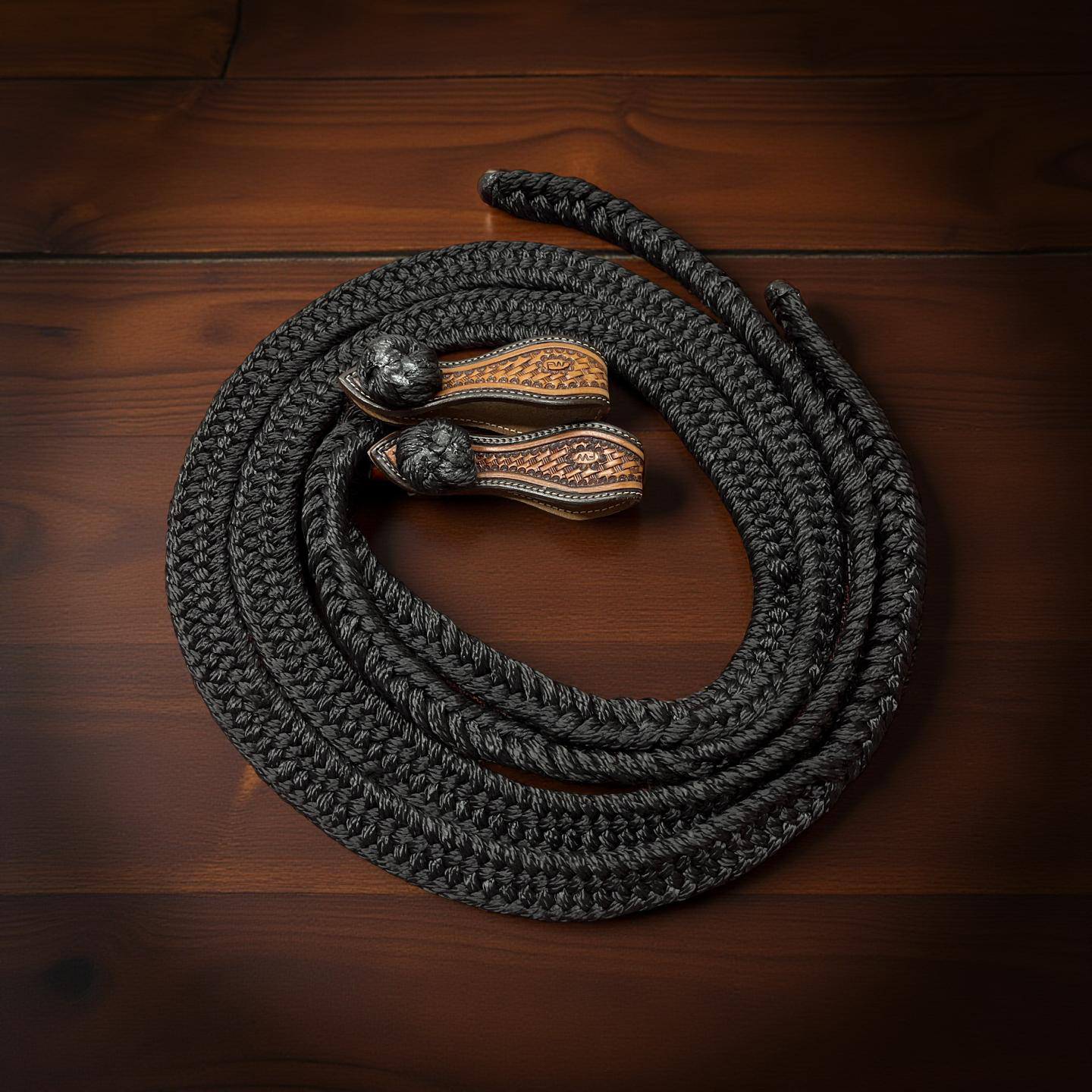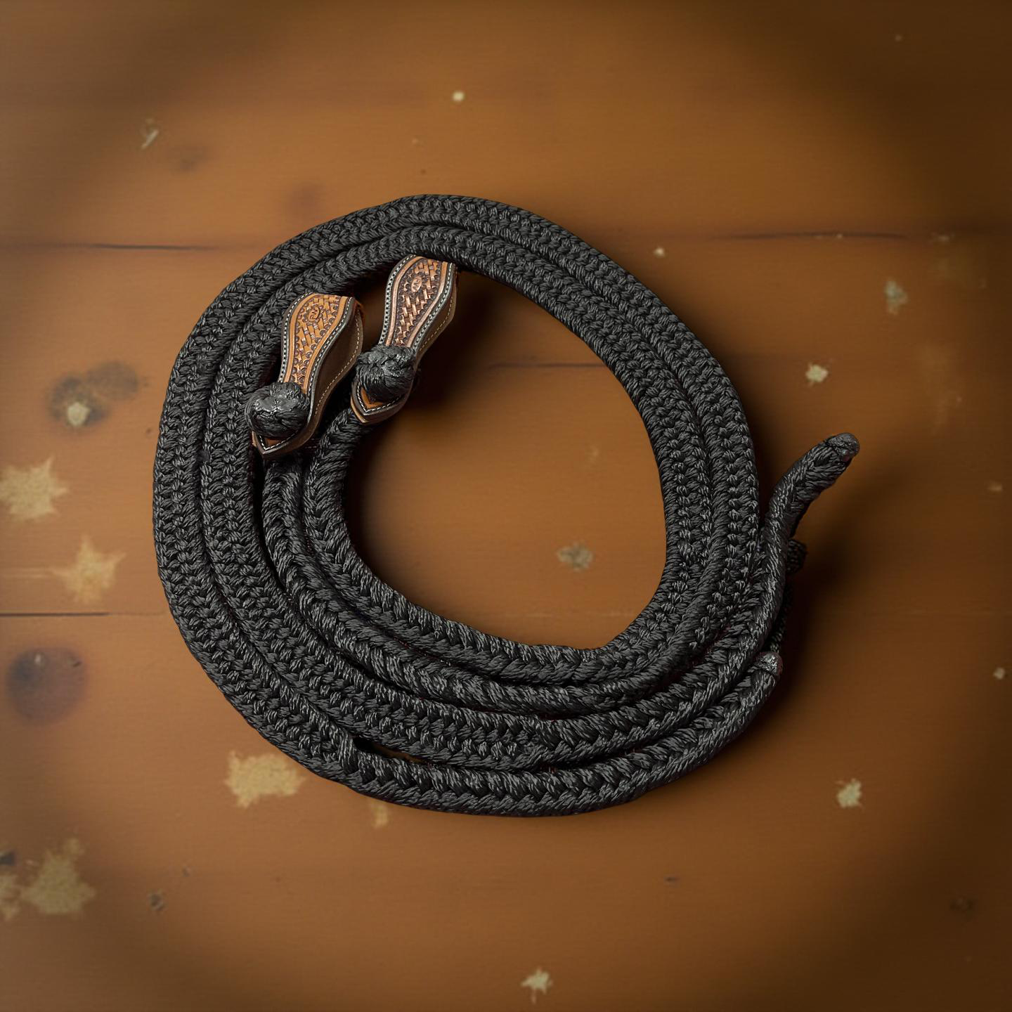 Blackie - New Black Campdraft Reins with Slobber Straps