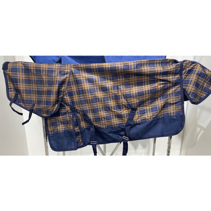Super breathable, water-resistant synthetic combo. 1200 denier, with large hole microfibre inner, which has a wick away effect on the horse's body allowing them to stay cool. Very lightweight and includes cross over belly bands and good quality fittings.