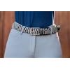 he Cavalier Leather Belt / Elastic is a stylish and practical accessory for any belt collection. Crafted from a leather/elastic weave, the den is a contemporary take on the classic belt. - Woven elastic - Leather end tip & loop - Metal buckle available in 2 sizes Large 36" and Small 32"
