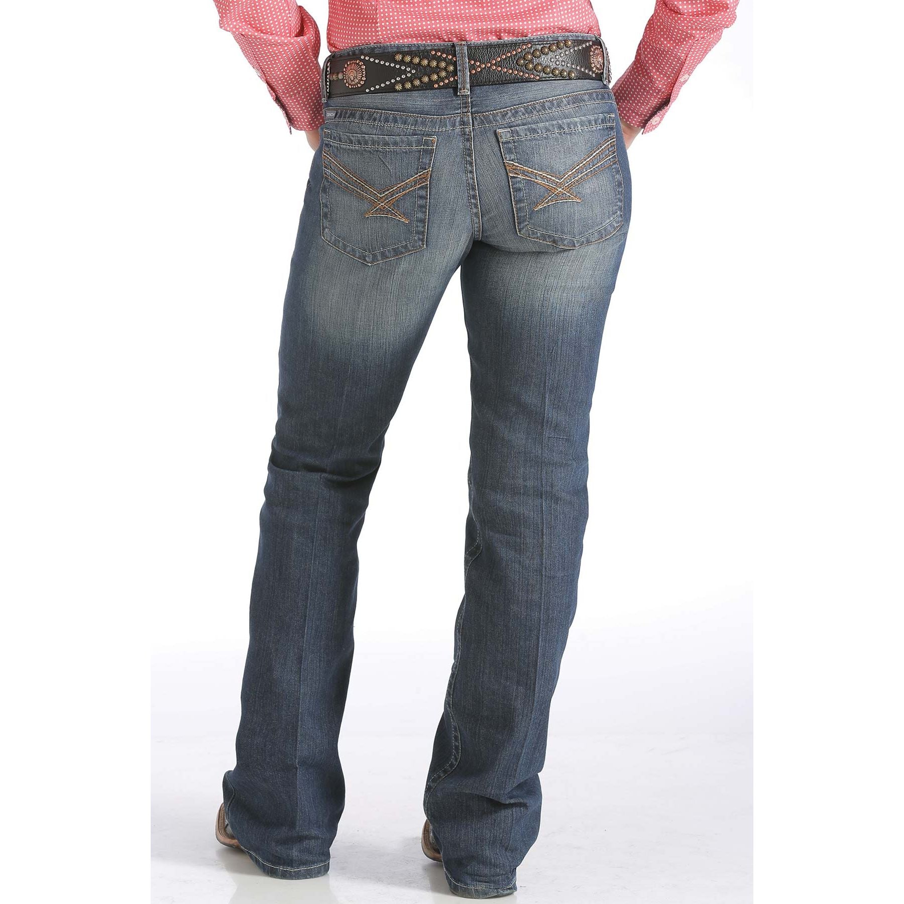The Cinch Ada jean combines comfort and casual style with its mid-rise waist and relaxed fit. Designed for everyday wear, it features a timeless wash and Cinch’s signature chevron-inspired stitching on the back pockets for a stylish finishing touch.