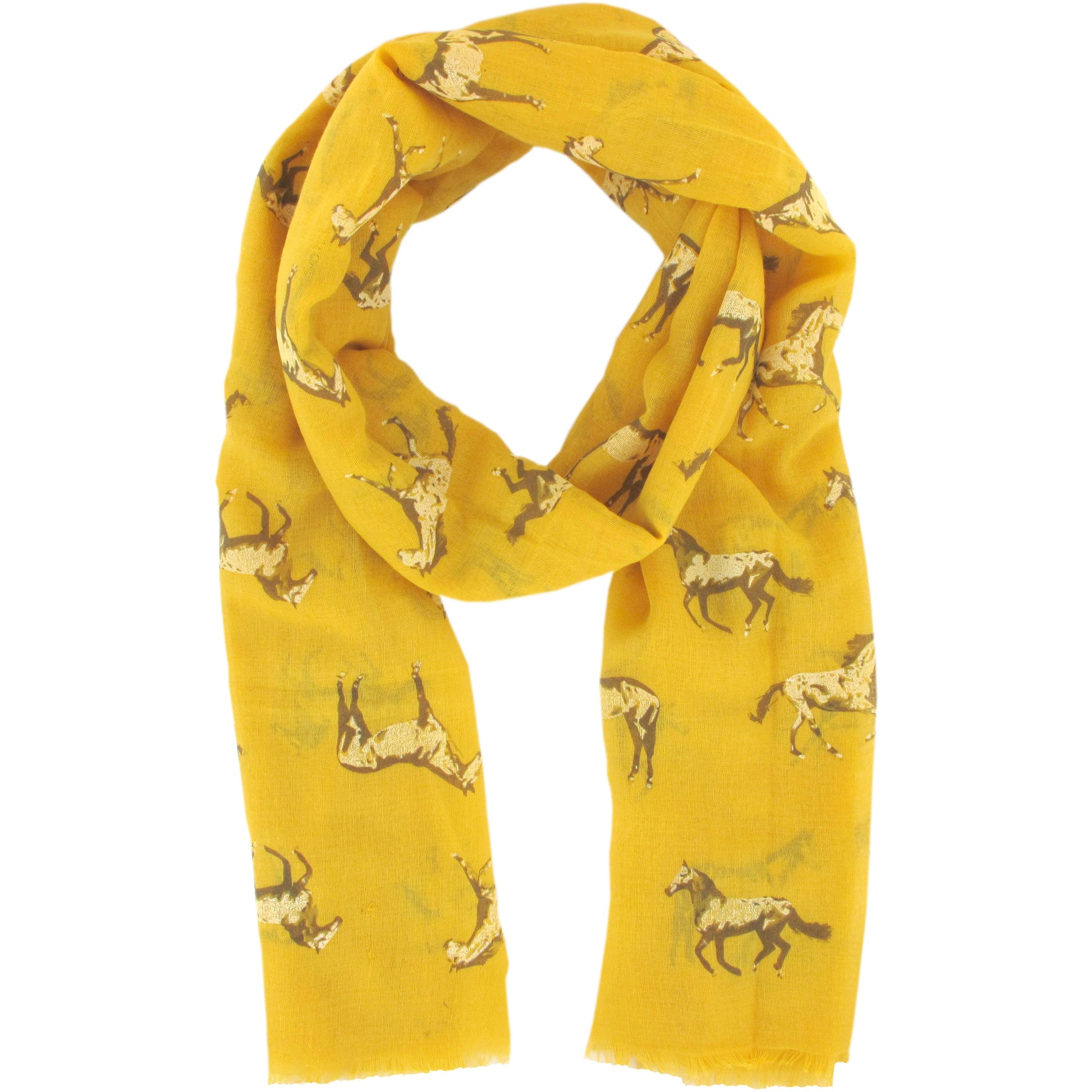 Stylish Mustard scarf with horse inspired print.