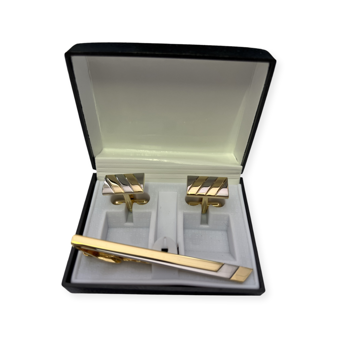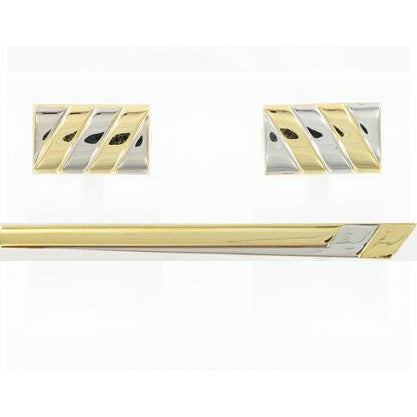 2 Tone Gold and Rhodium rectangle Cuff link and Tie clip set Gift boxed