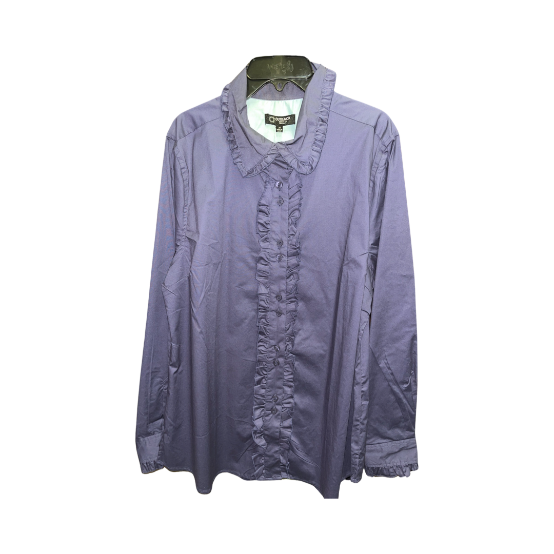 With its ruffle detailed front, this Navy blouse is a classic cotton shirt with a lovely feminine feel. Comfortable generous fit, long sleeves, and buttons down the front, this shirt is perfect to pair with any Outback jeans.