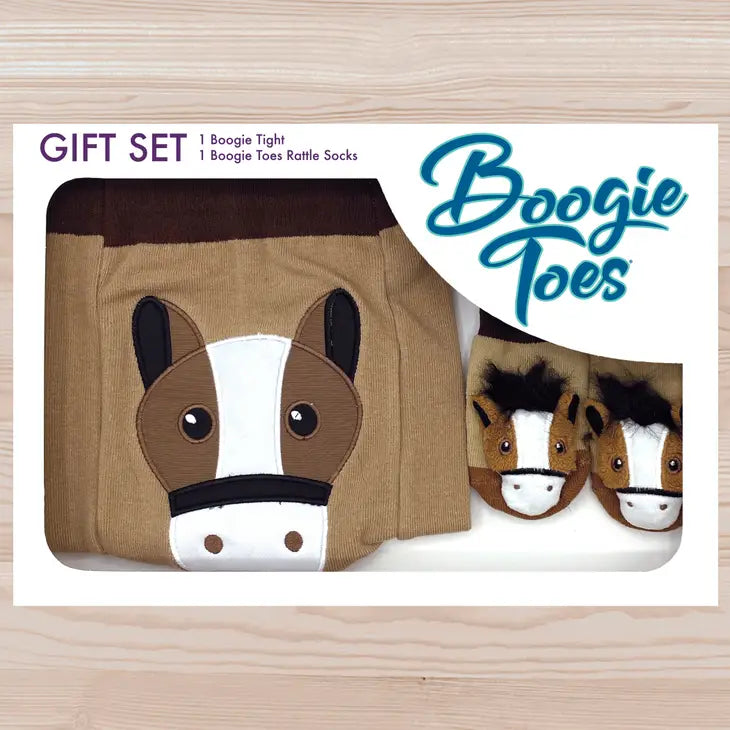 Gift Box Set. Beautiful gift set containing a matching Boogie Toe Rattle sock and Boogie Tights baby legging.