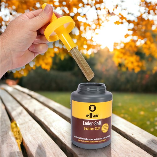 Discover Effax Leather Soft 500ml, a high-quality leather care solution designed to nourish and protect your equestrian gear. This specially formulated conditioner combines lanolin and avocado oil to keep leather supple, tear-resistant, and soft. The addition of beeswax not only leaves a pleasant scent but also enhances the leather's durability. Ideal for saddles, bridles, and other leather equipment, Effax Leather Soft ensures your tack remains in top condition. With a generous 500ml bottle, this product offers long-lasting care for all your leather goods. Experience the difference in your leather's texture and longevity with this essential equestrian maintenance product.