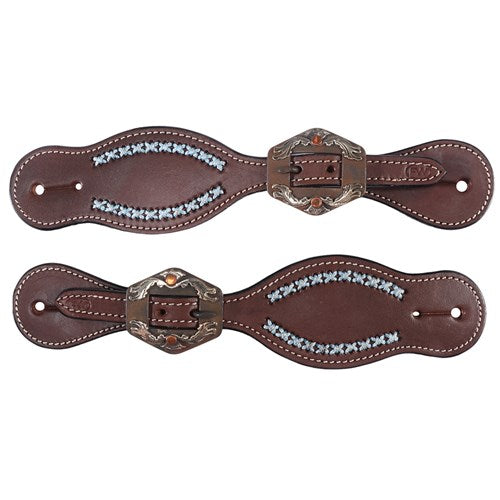 Add a pop of colour to your riding gear with the Fort Worth Aiyana Spur Straps. Handcrafted from premium genuine leather, these straps feature striking turquoise stitching that beautifully contrasts the rich brown leather. Stylish yet durable, they’re designed with the same high-quality craftsmanship and materials as all Fort Worth® riding tack.