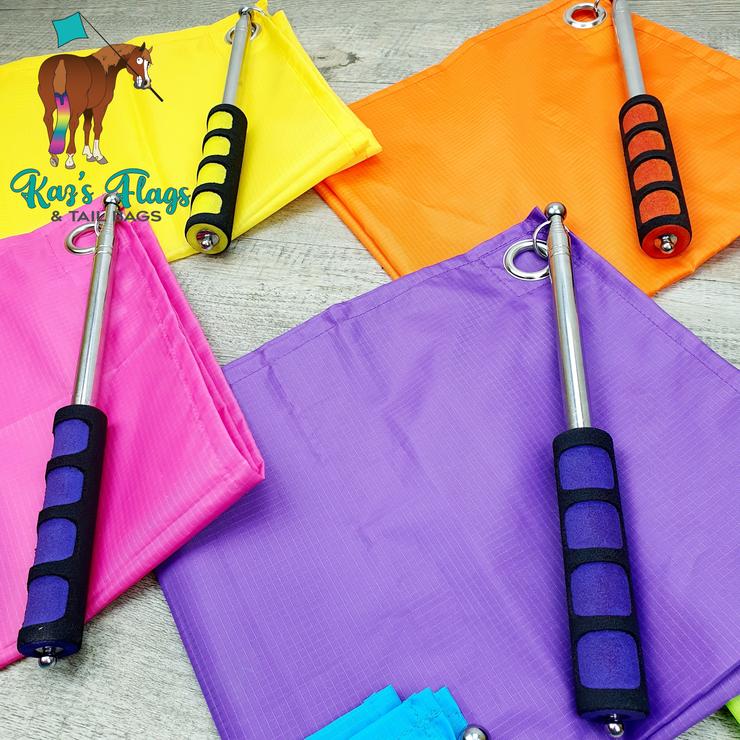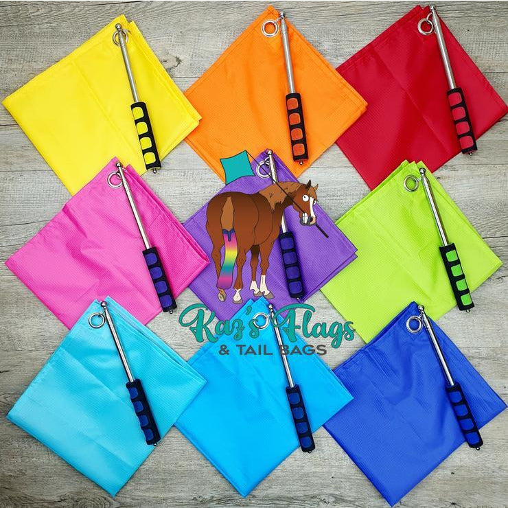 - These horse training flags are made using 3mm ripstop nylon material, which are lightweight, water resistant, strong and durable and available in a variety of colours.
