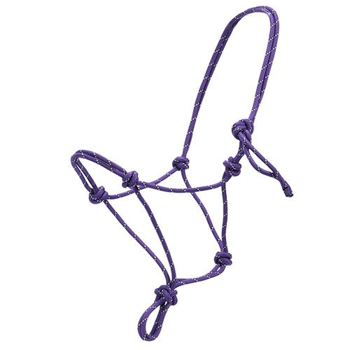 A practical and gentle halter made from a continuous length of durable braided climber’s rope.
