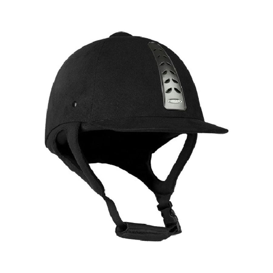 Riding helmet with extremely impact-resistant shell. Disc system for smooth adjustment.