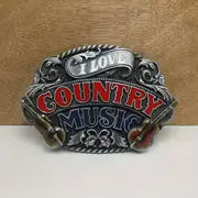 Design: Decorative “I Love Country Music” motif in an oval frame