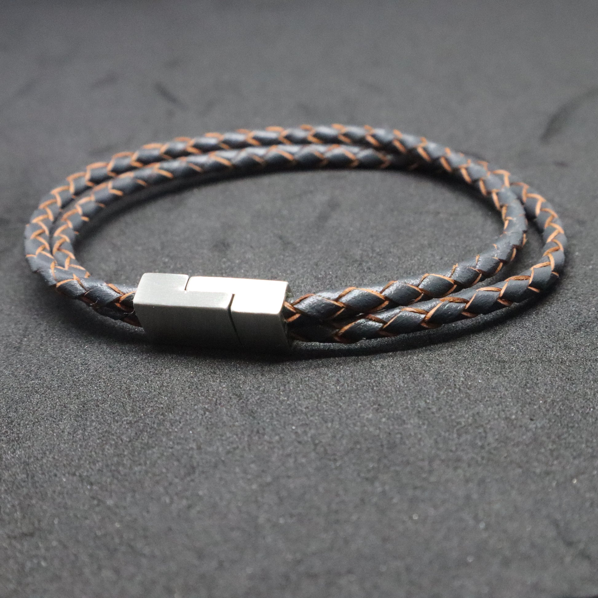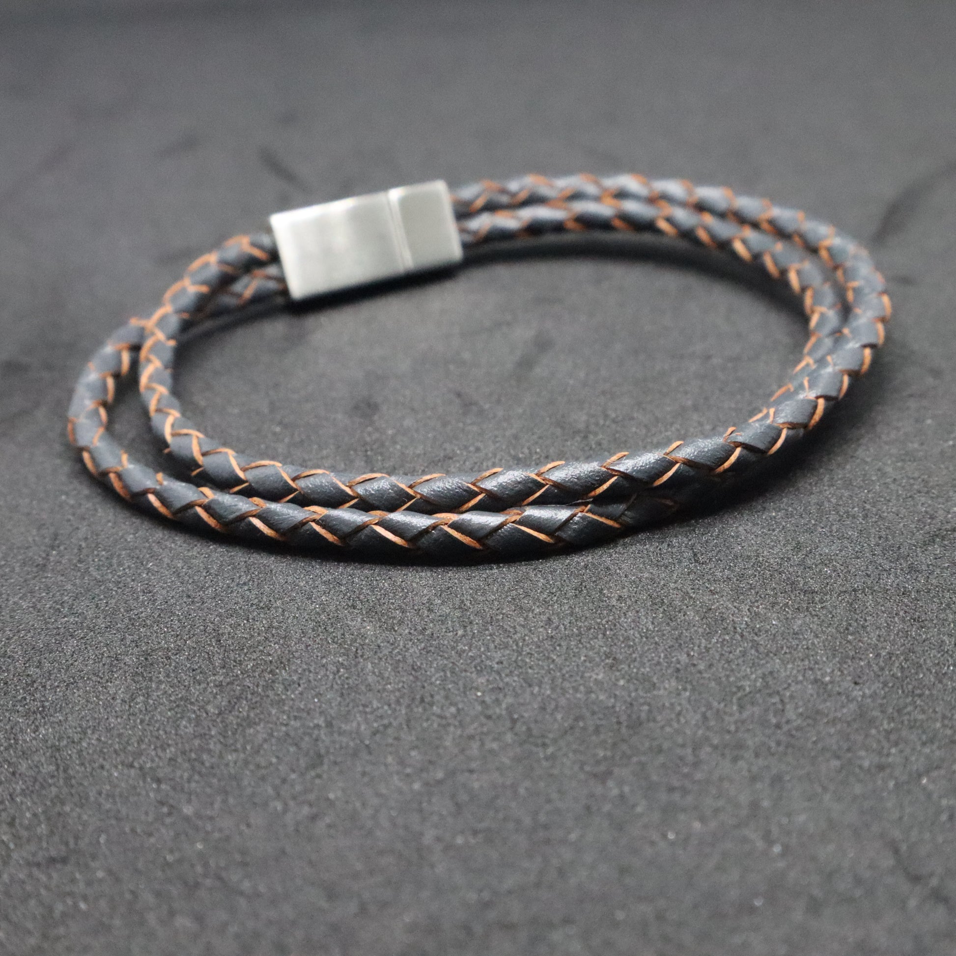 A men's leather bracelet is a stylish and versatile accessory designed to complement a variety of outfits. Crafted from high-quality leather, it features a rugged yet refined look that adds a touch of masculinity to any ensemble. Whether in smooth, braided, or embossed designs, the bracelet offers a mix of durability and comfort. Often paired with metal clasps, rivets, or studs, it balances edgy charm with timeless elegance. Perfect for casual wear or as a statement piece for a more polished outfit, this bracelet is a go-to accessory for the modern man who appreciates both fashion and functionality.