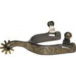 Crafted from stainless steel, this campdraft spur features elegant silver and bronze stamping along the sides, adding a touch of classic Western flair. Equipped with a durable 9-point rowel for precise, responsive cues.