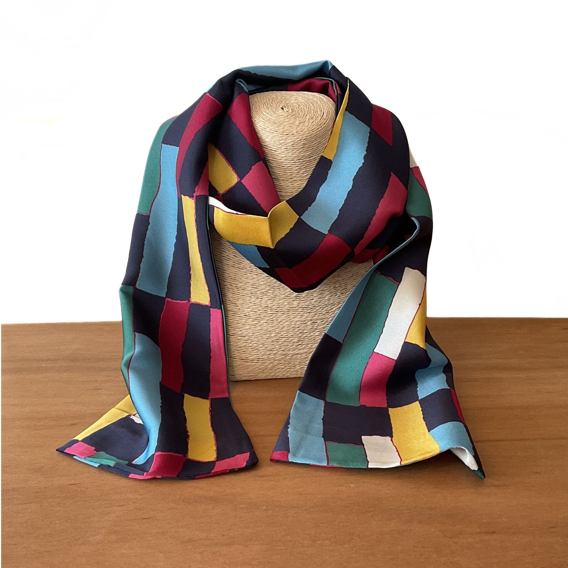 Elevate your style with this Navy Abstract Scarf, featuring a bold and bright abstract print that adds a touch of elegance to any outfit. Made from soft, silk-feel polyester, this lightweight scarf is perfect for layering and accessorizing year-round.