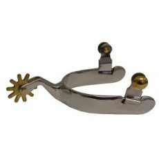 Durable stainless steel offset pleasure spurs designed for comfort and control in campdrafting. Featuring brass fittings and rowels, these spurs combine classic style with reliable performance.