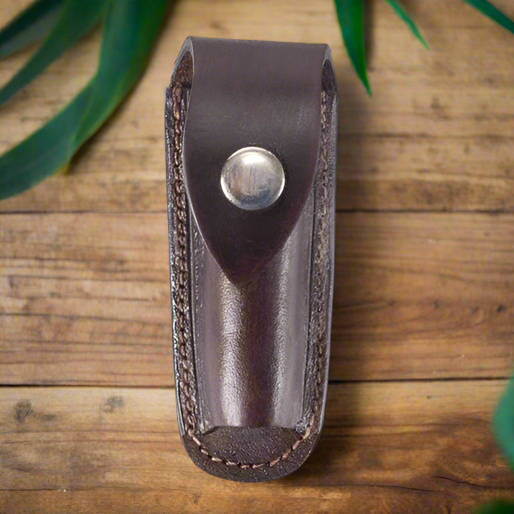 The Ord River Knife Pouch offers an economical and reliable way to carry knives up to 3.25 inches, perfect for both work and leisure activities. Crafted from handcrafted brown top grain leather, this pouch combines rugged durability with a classic, timeless look.