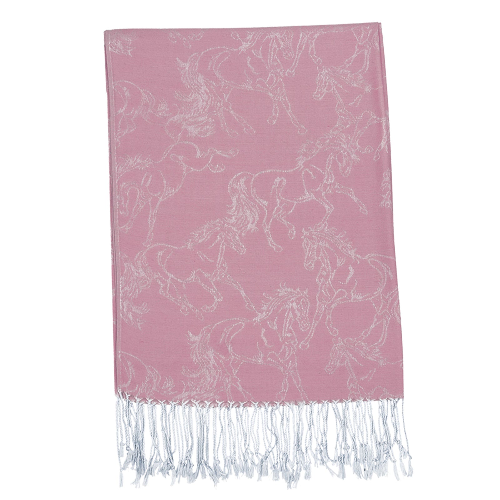 Add a touch of elegance to your outfit with this beautiful horse-themed Pashmina and Silk scarf. Featuring delicate embellished horse motifs on a soft mauve background, this scarf is perfect for anyone who loves equestrian style.