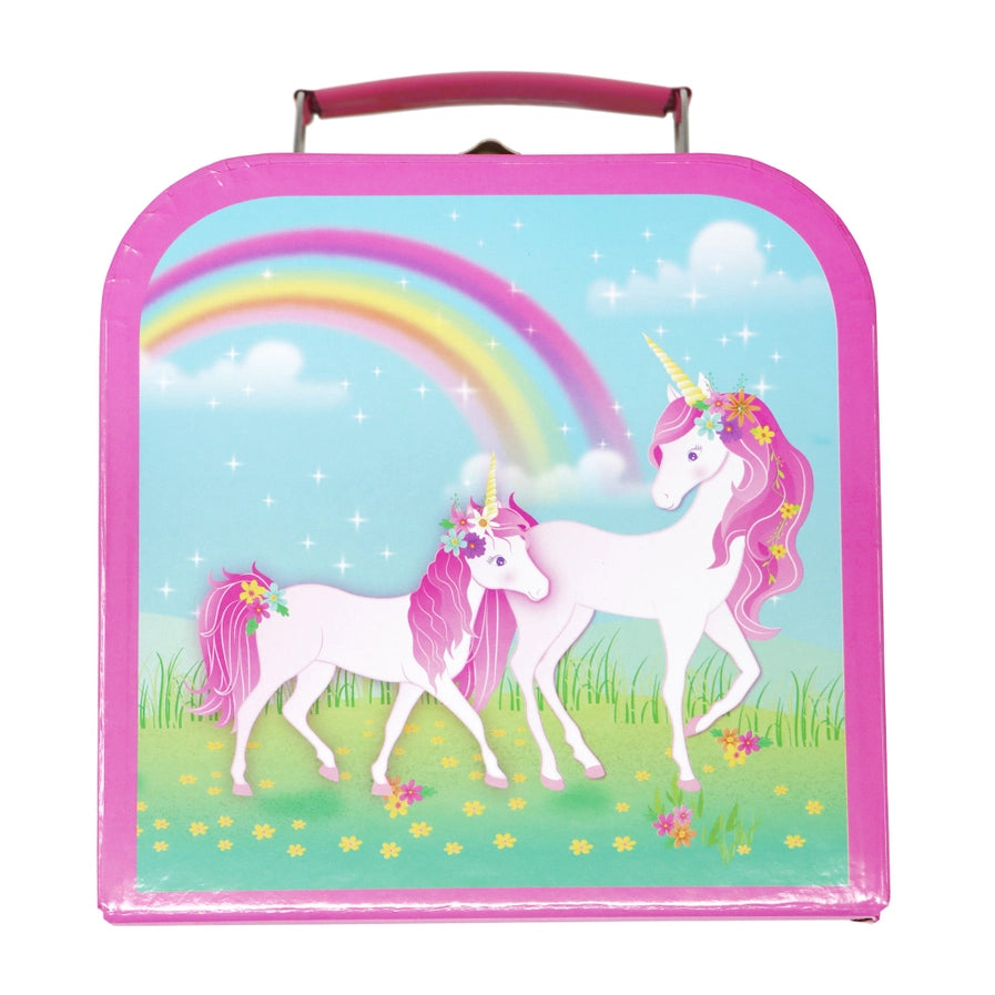 Host a magical tea party with Pink Poppy’s Stardust Unicorn Tin Tea Set! Featuring enchanting artwork of a pink-maned unicorn prancing under a starry rainbow sky, this limited-edition set is designed to spark imagination and delight young hearts.
