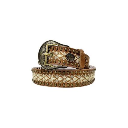 This belt combines Western tradition with modern style. The embroidery and dome studs make it eye-catching, while the antique brass and concho give it authentic Western character. Perfect for pairing with jeans, casual outfits, or rodeo wear.