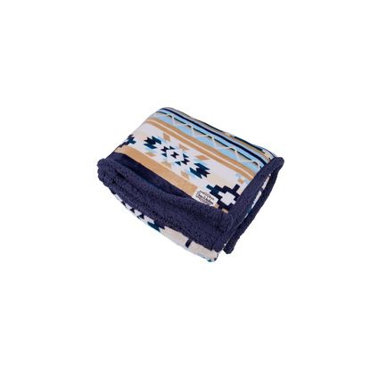 Featuring a bold Aztec print on the outer layer and a plush sherpa lining for extra warmth, it’s perfect for the couch, caravan, rodeo trips, or outdoor events. Finished with a Pure Western satin badge for an authentic touch.