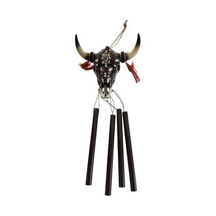 Measuring 23.5cm (W) x 11.5cm (D) x 26cm (H), this resin and metal wind chime features a detailed steer head design, adding rustic charm and soothing sounds to any space.