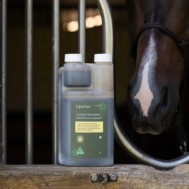 Developed to help the body maintain a healthy response to external stressors, Remedeaz® Oral Immune Support works by supporting gut health, skin barrier function, skin integrity, and overall vitality. As the majority of the horse’s immune system resides in the gut, maintaining a balanced microbiome is essential for strong immune function.