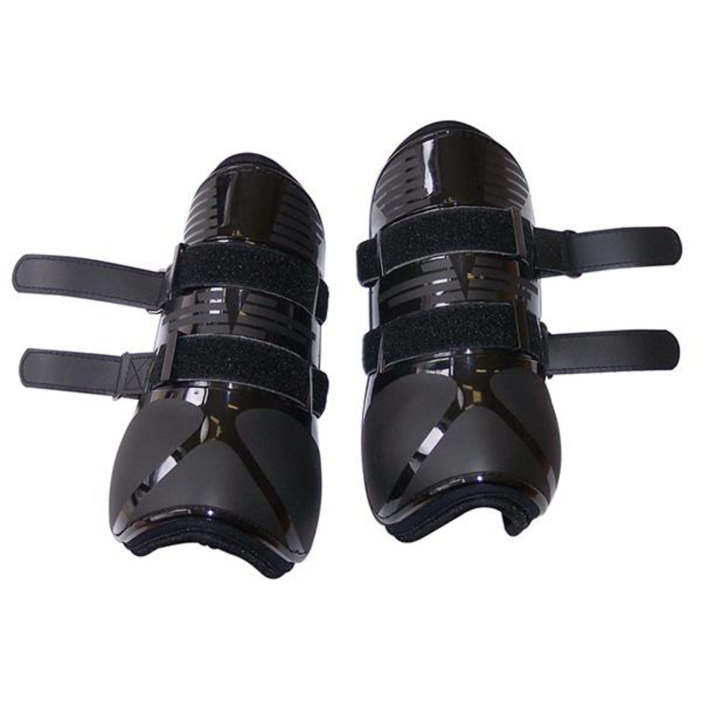 Polyurethane open front boots lined with soft neoprene for lightweight comfort. Featuring a glossy patent leather look, these boots combine style with protection for your horse’s shins.