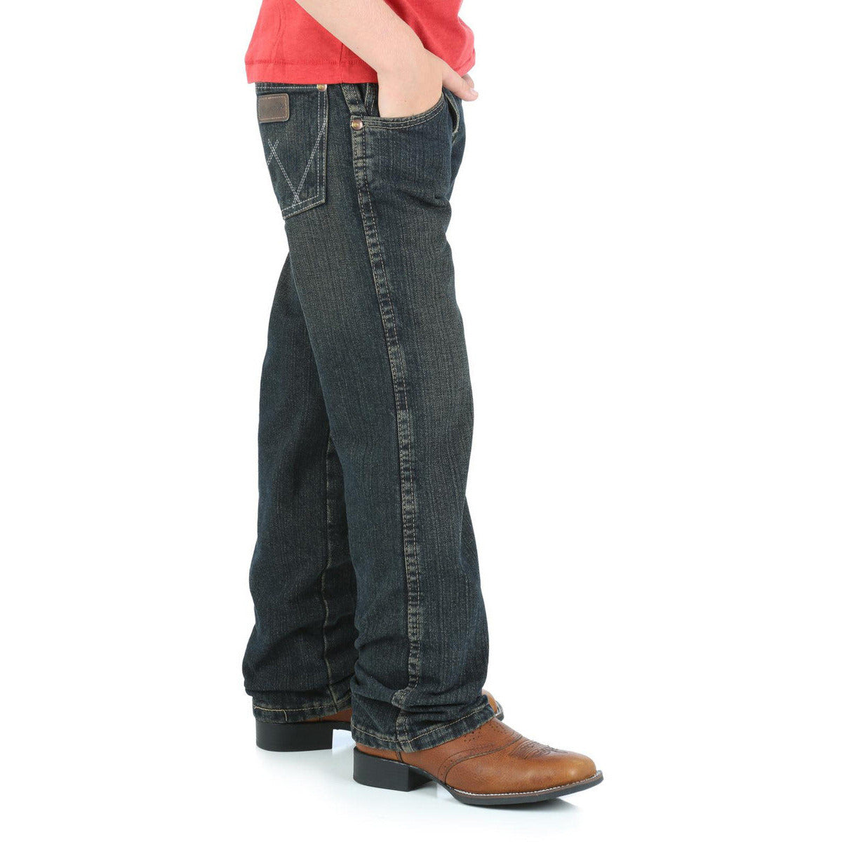 Sits lower on waist, relaxed seat, thigh and knee, straight leg, fits over boots