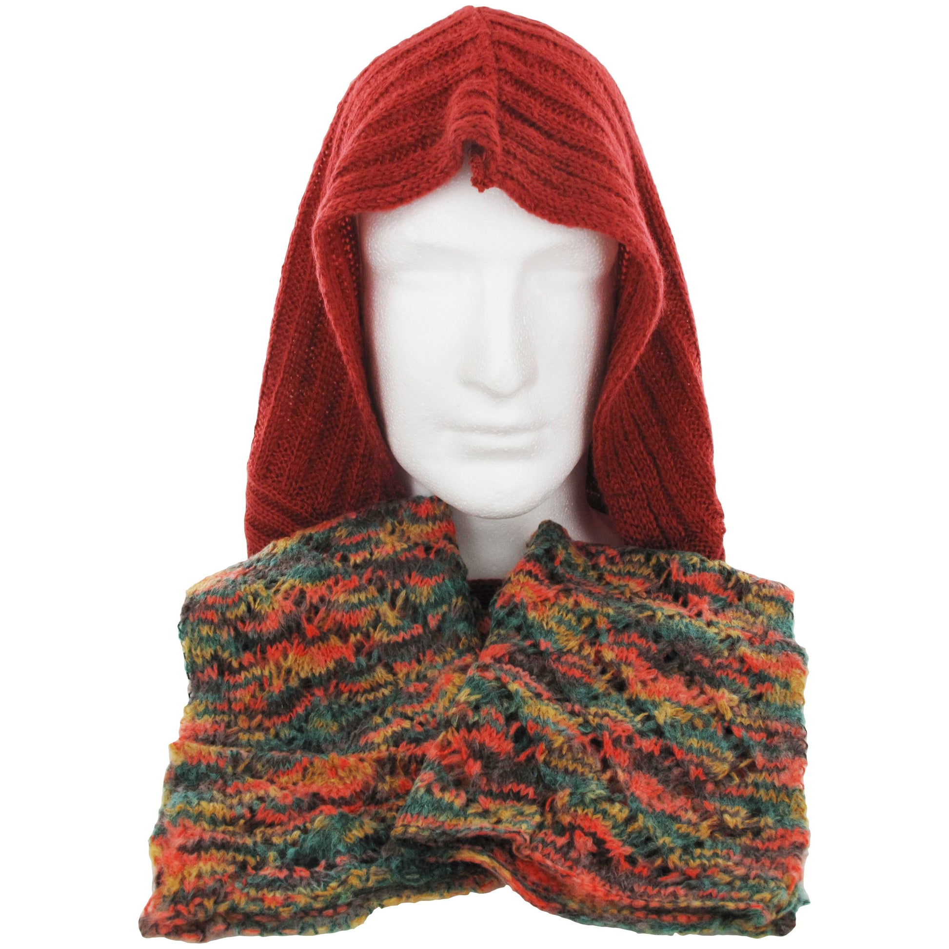 Embrace the cold in style with this Rust Hooded Scarf, featuring eye-catching orange and green detailing. Made from warm and soft 100% acrylic, it offers the perfect blend of comfort, coverage, and character.