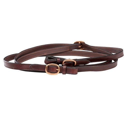 • Double Billet Reins: Buckle-up design with brass fittings throughout.
