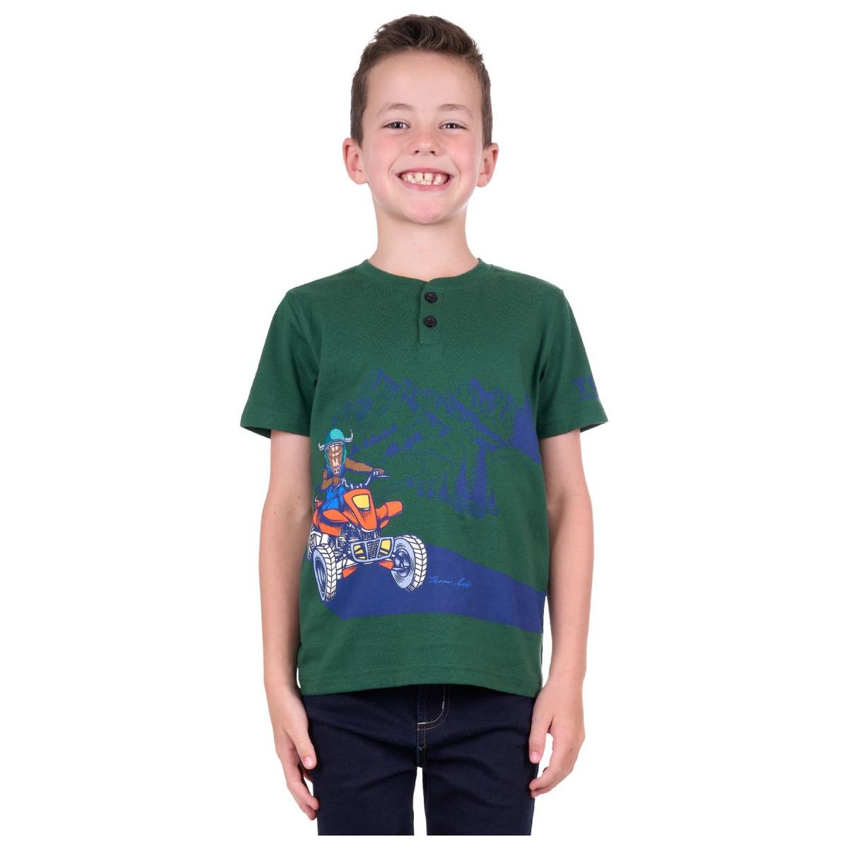 Henley style short sleeve tee, button closure, large feature print with wrap around design, sleeve print, contrast neck taping