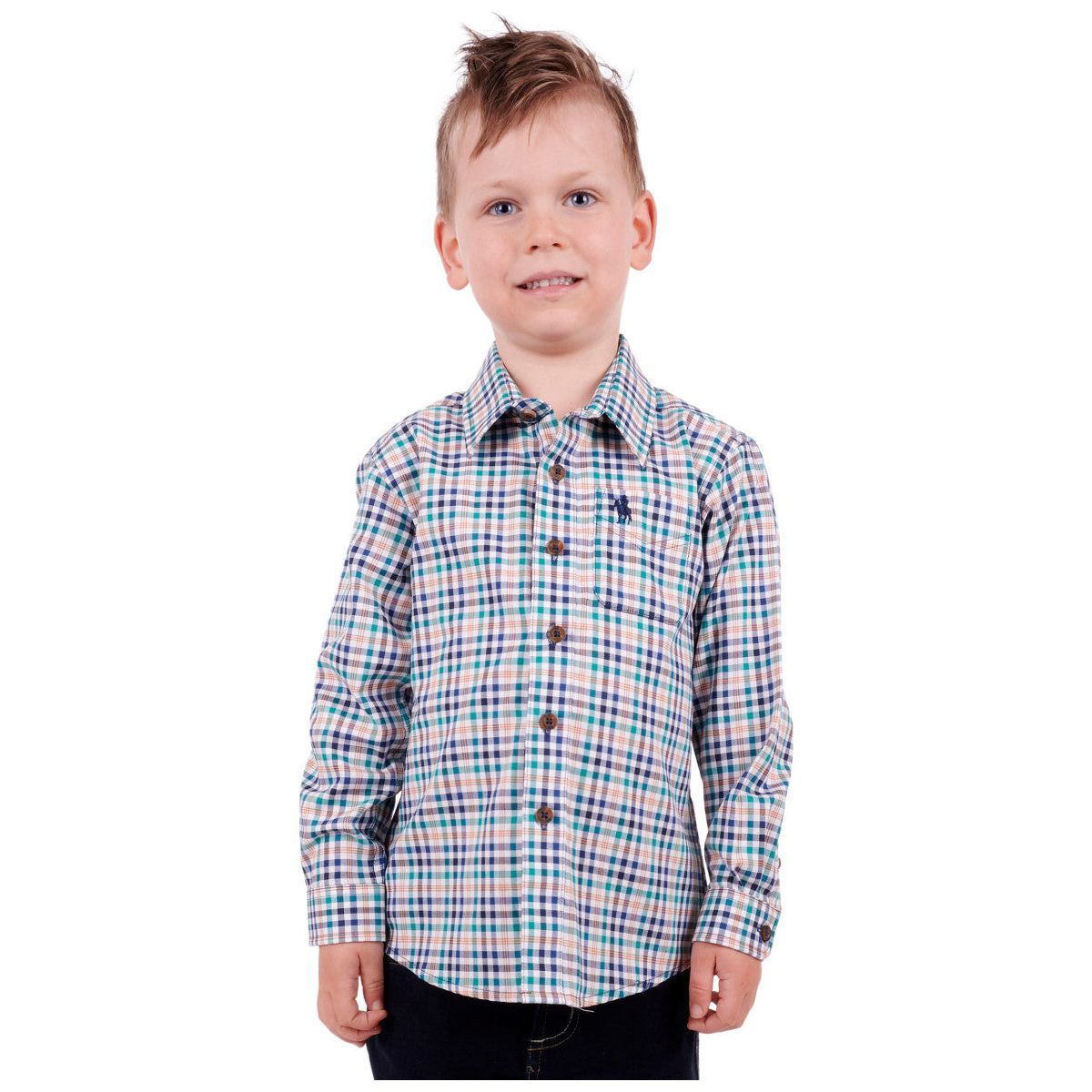1-Pocket long sleeve shirt, single chest pocket, long shirt tail, back pleat for comfort and movement, contrast inner yoke facing with stripe tape detail, horseman embroidery on chest pocket