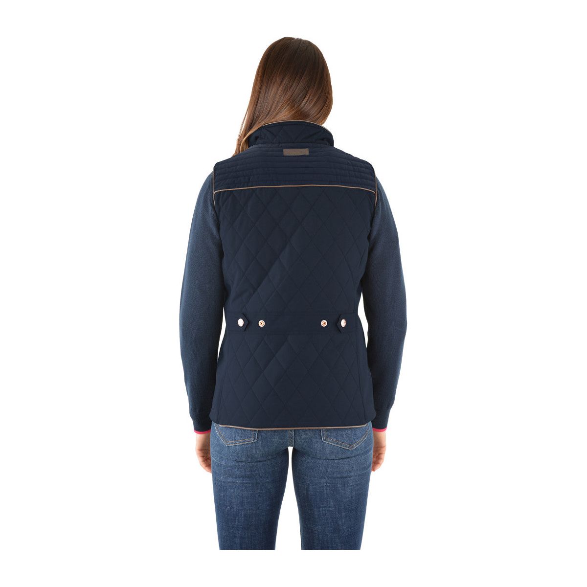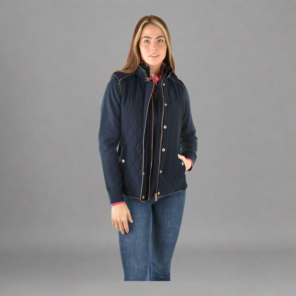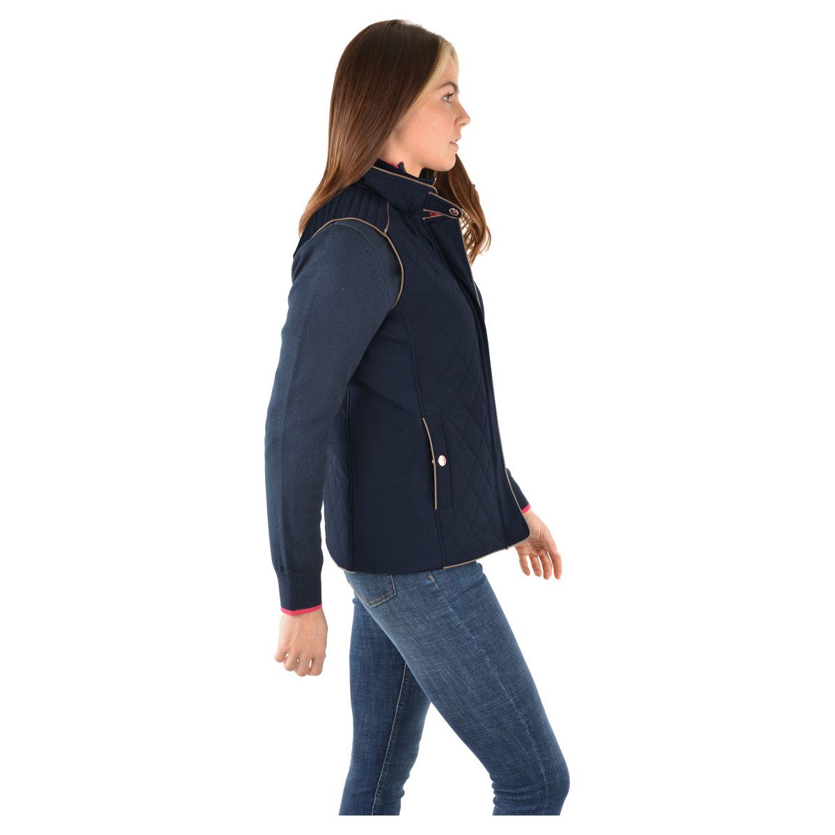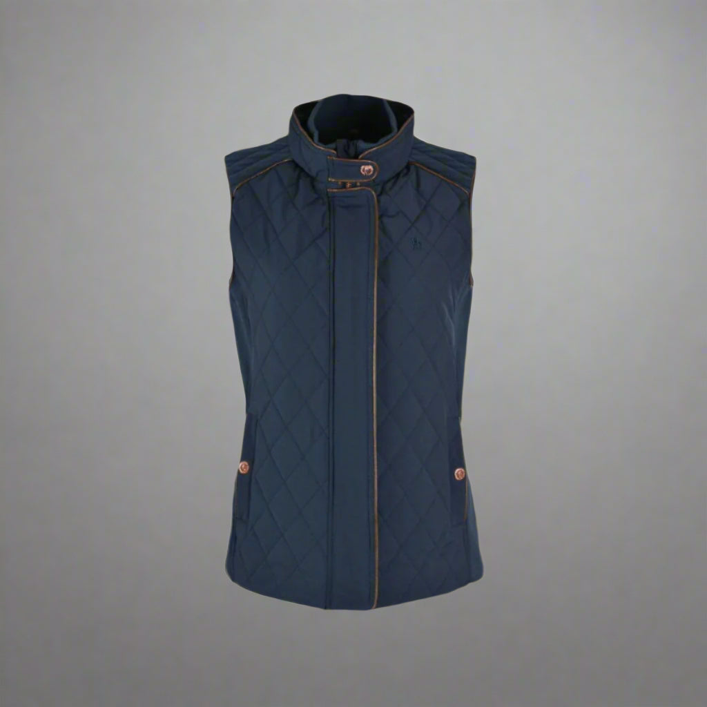 Crafted from water-resistant diamond-quilted fabric, it features mock leather piping, a ribbed inner collar, and side stretch panels for enhanced comfort and mobility. The soft jersey lining adds warmth without bulk, while premium TC trims, a quality zipper opening, and welt pockets bring functional elegance. Finished with signature horseman chest embroidery, it’s the go-to vest for town or country.