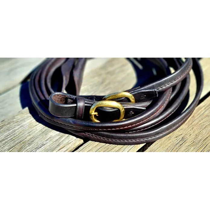 Finished with leather popper ends and solid brass buckle ends for secure bit attachment.