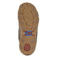 COLOUR SIZE FIT Bomber / Taupe 11 USA - M WIDTH • Full-grain leather with durable printed fabric upper • Breathable moisture-wicking Air-Mesh lining • Removable, moisture-wicking, antibacterial and machine washable moulded footbed • Compression-moulded EVA midsole integrated with Twisted X® patented Cell Stretch® comfort technology and a nylon/ glass fibre shank provide long-lasting comfort, stability and durability • Moulded rubber outsole provides durability