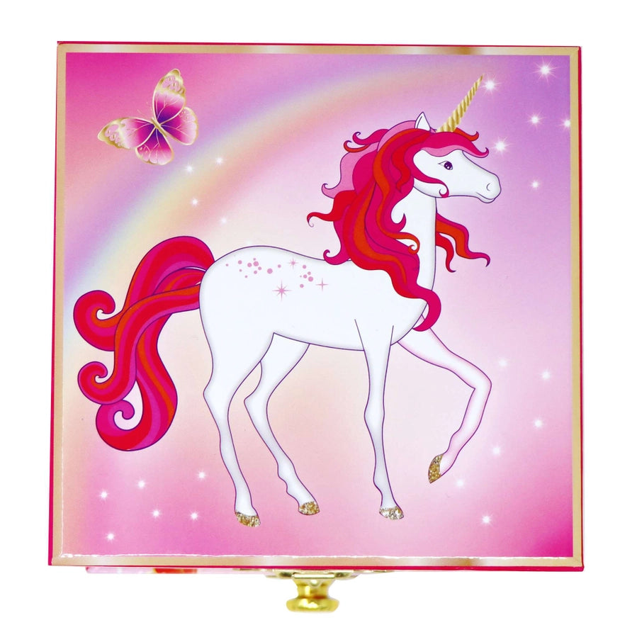 Pink Poppy's Unicorn Butterfly Small Musical Jewellery Box is a gorgeous keepsake portraying fun illustrations of a fantasy land full of rainbows, butterflies, and flowers. It features an oval mirror and a flocked interior. The wind-up design plays the classic tune 'Dance of The Sugar Plum Fairy' whilst the Unicorn figurine twirls delightfully.