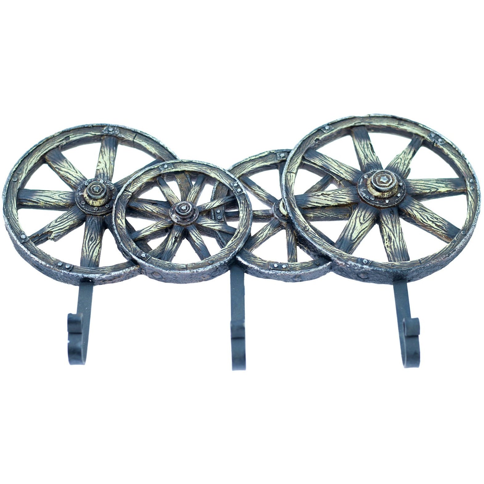 Resin Wall Hooks - 1x 3 Hook Hanger with Wagon Wheels Measures : 35cm * 22cm