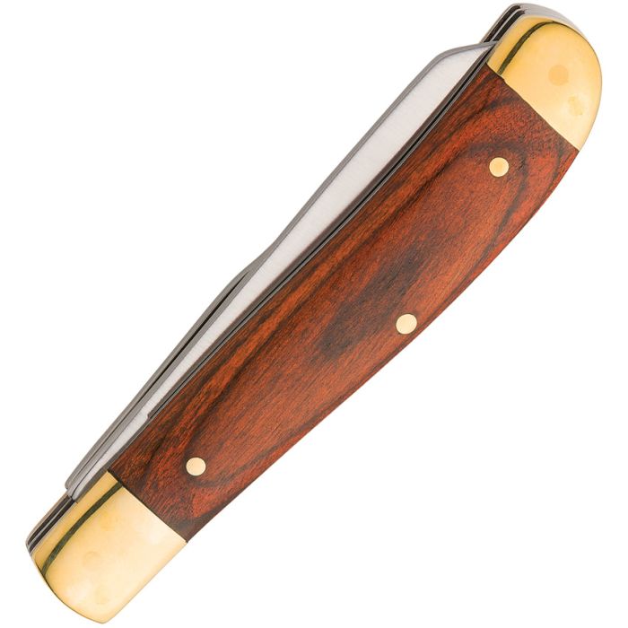 Handle: Rich brown wood with nickel silver bolsters