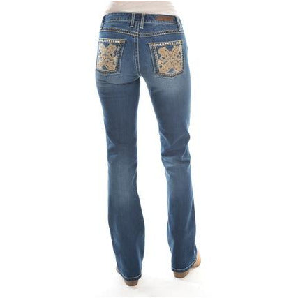 Features: Relaxed boot cut - 34Inch leg, five pocket styling, front & back pockets with feature embroidery & embellishments, all over feature stitching, logo rivets at stress points