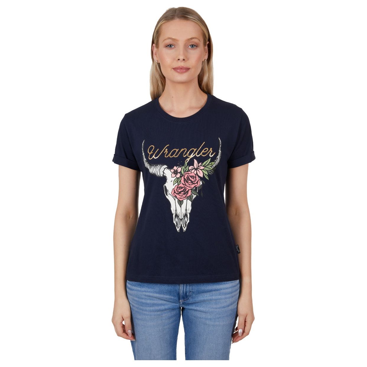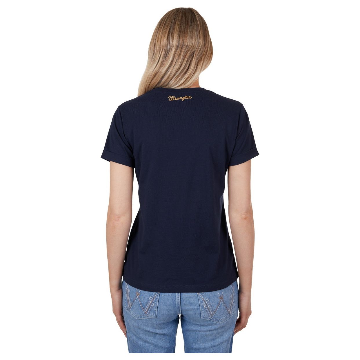 The Wrangler Donna Short Sleeve Tee is a classic shaped tee with a large metallic Wrangler print on the front. Made from a cotton and polyester blend, this is a comfortable shirt you'll want to wear each and every day.