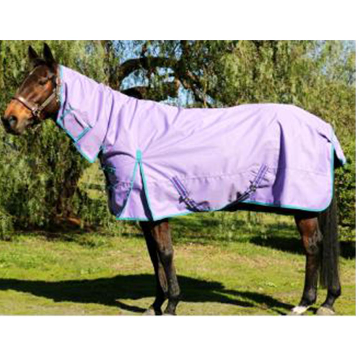 Combo with 1200 Denier 4 times treated waterproof outer. Cotton lined body. Anti rub synthetic satin in shoulders, combo neck & tail flap. Quick clip chest straps. Double x-over surcingles with elastic. Deep shoulder gussets. 2 velcro fittings on combo neck Removable leg straps & 3 gathered rump darts for a moulded fit.